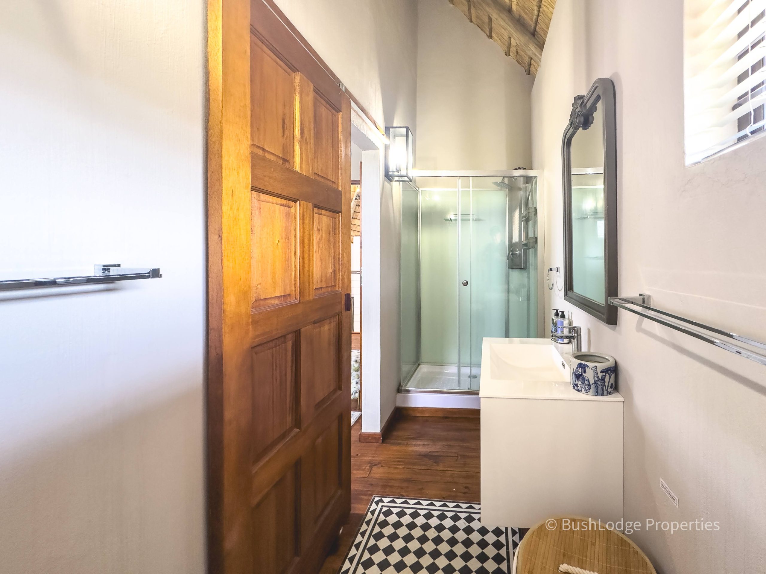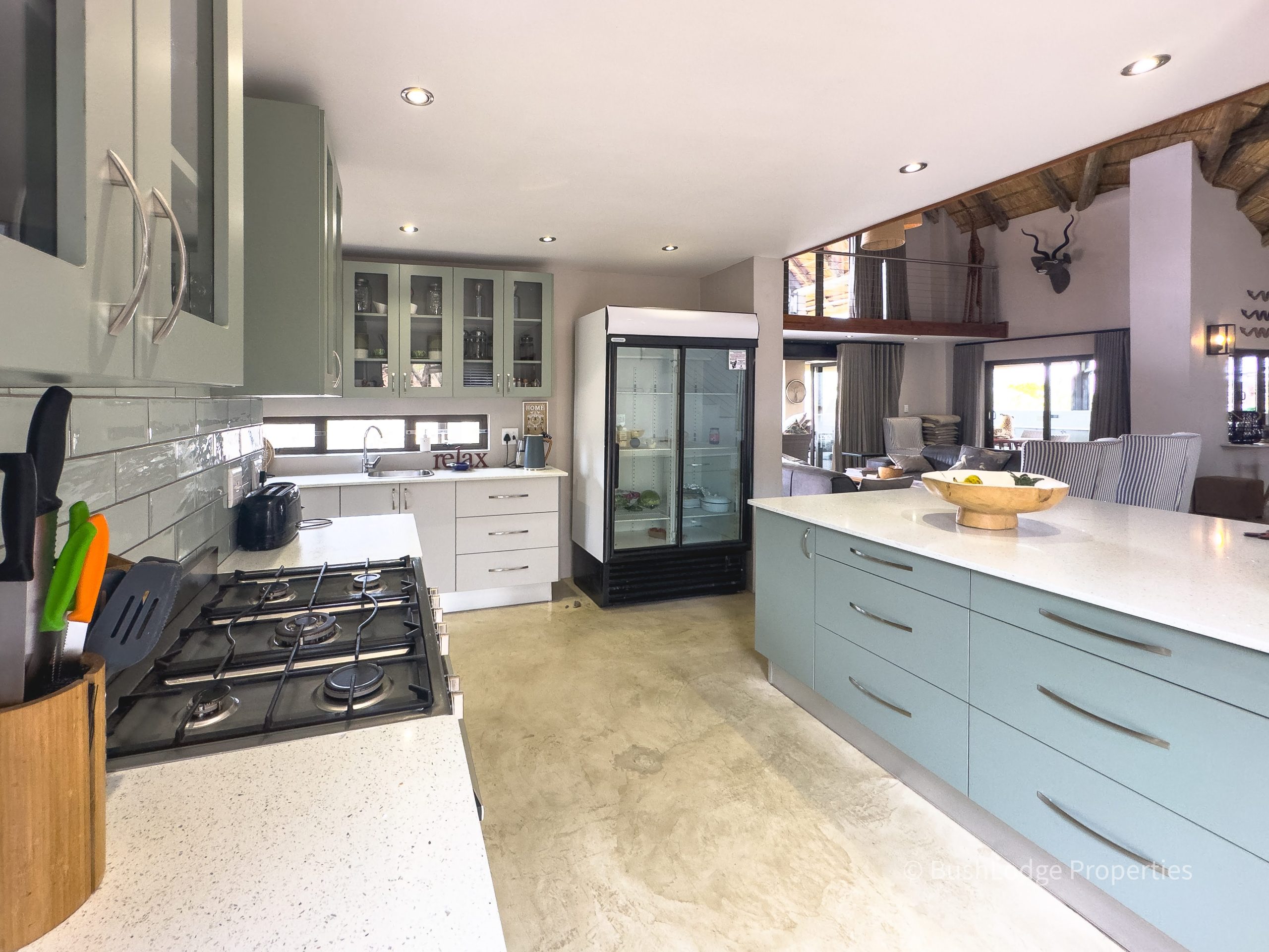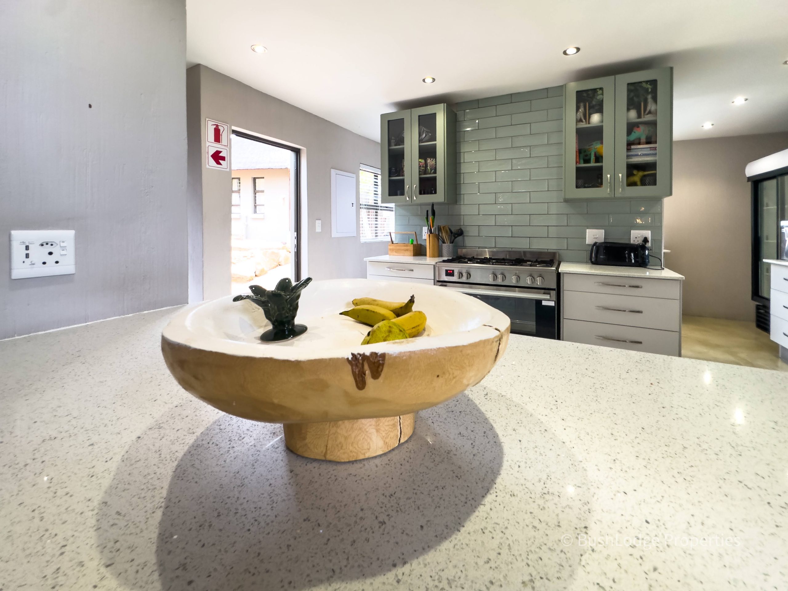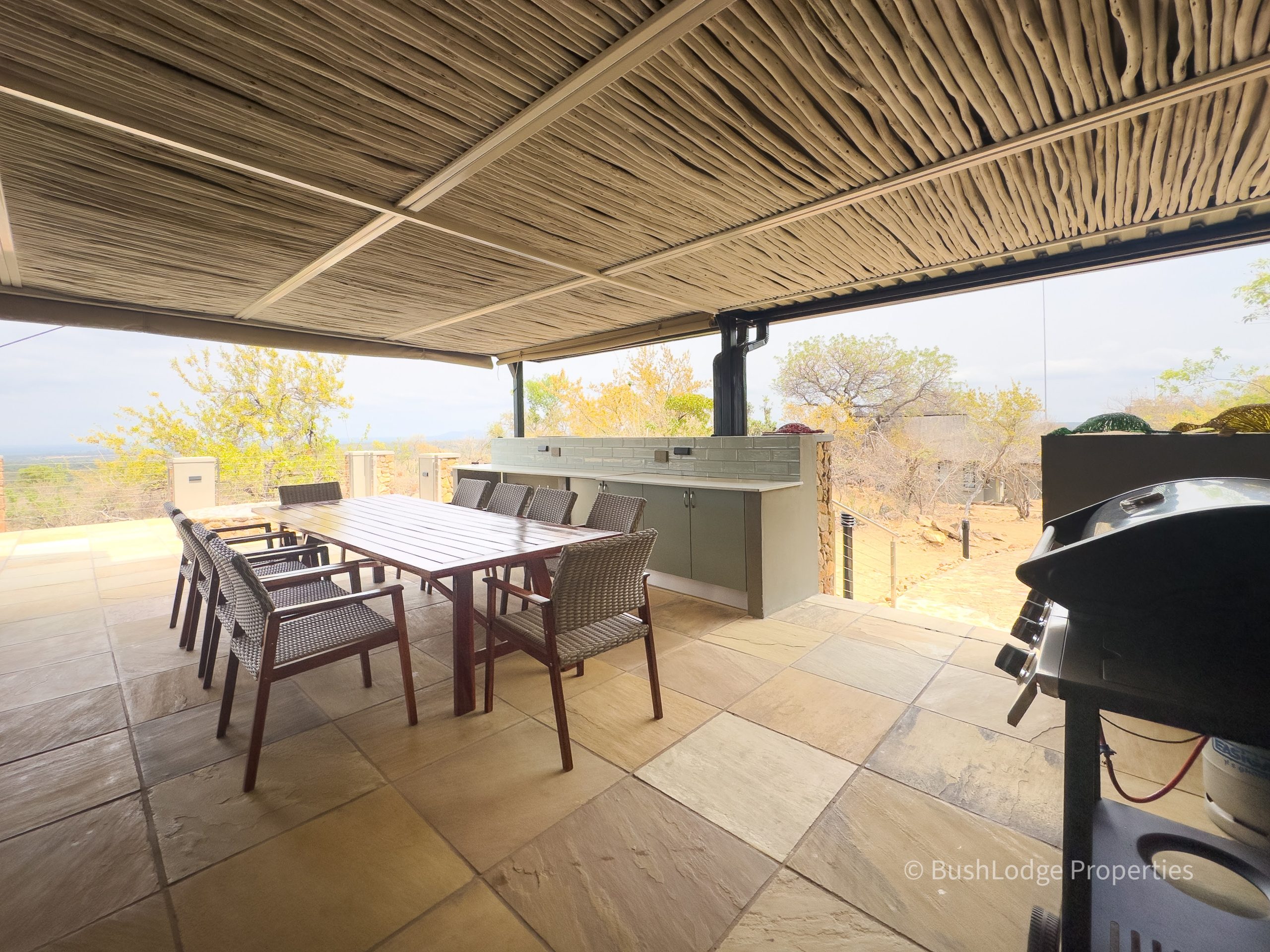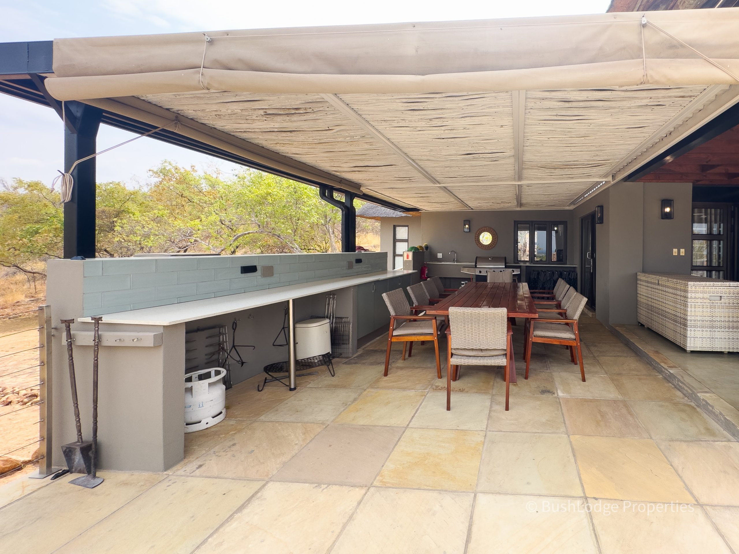 Outdoors, life revolves around the Bushveld. Enjoy a large swimming pool, a covered lounge deck for lazy afternoons, and a dedicated dining and braai area complete with a gas grill and plenty of space for entertaining.